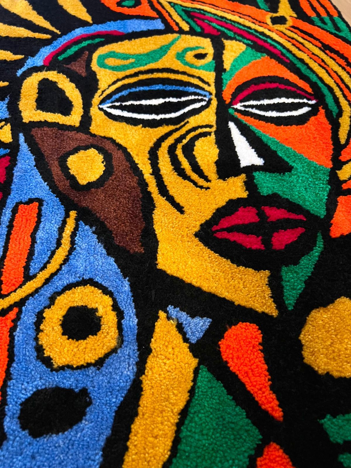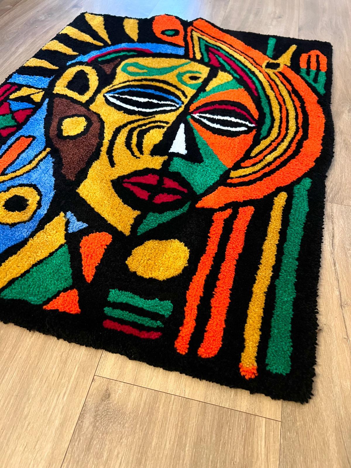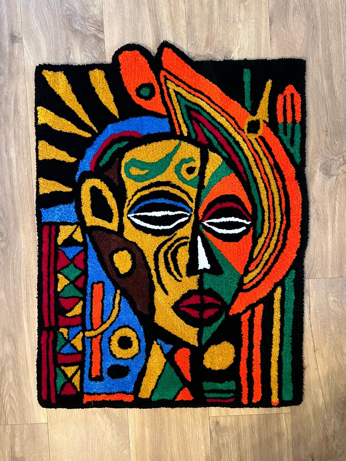 Custom handmade hand tufted Abstract African carpet / tapestry, made with acrylic material. The bottom of the carpet is made of non-slip material.