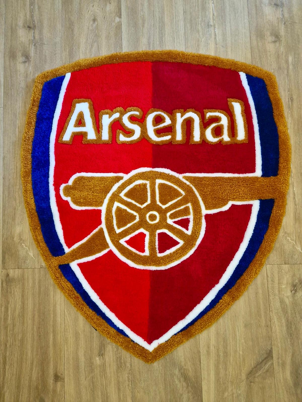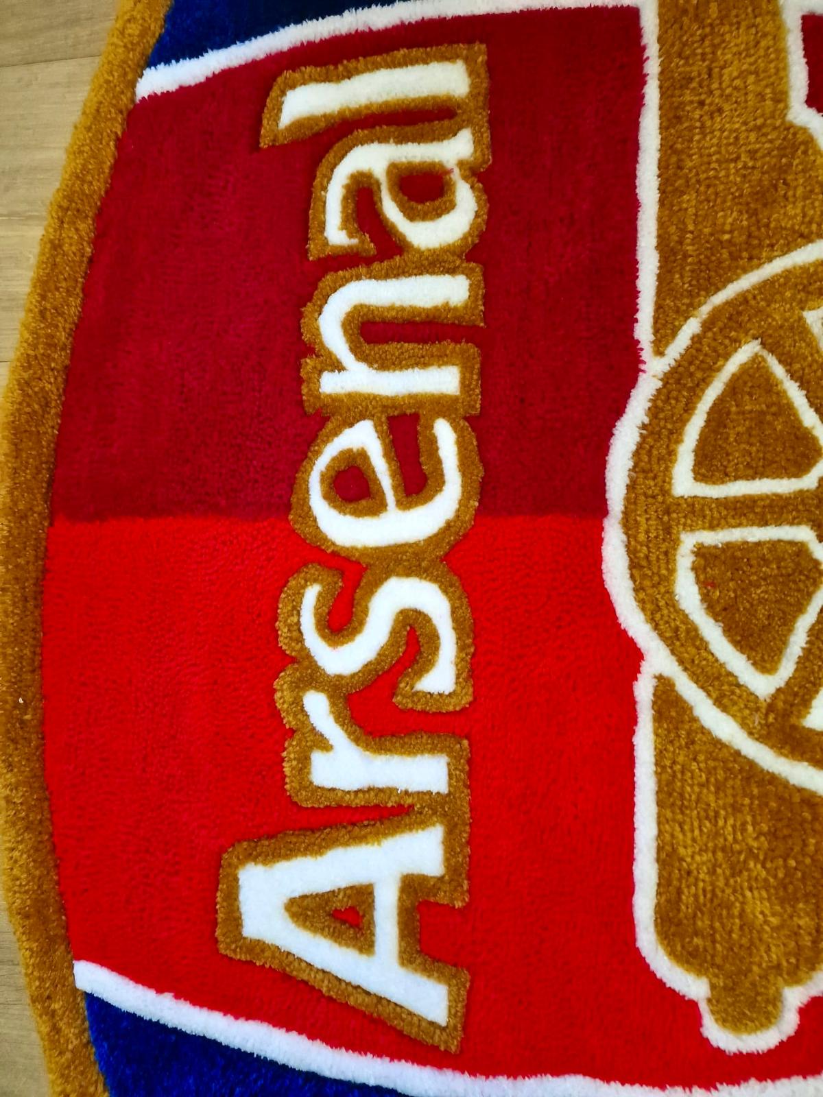 Custom handmade hand tufted Arsenal carpet, made with acrylic material. The bottom of the carpet is made of non-slip material.
