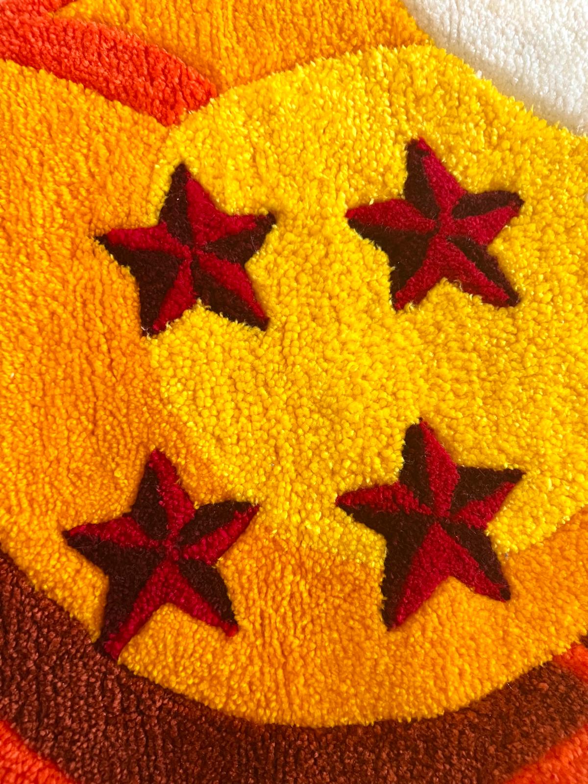Custom handmade hand tufted Dragon Ball carpet, made with acrylic material. The bottom of the carpet is made of non-slip material.