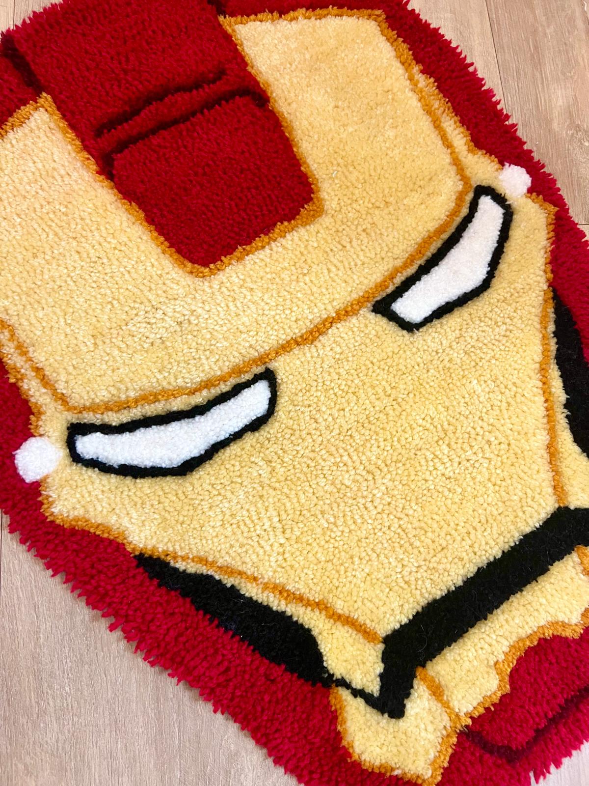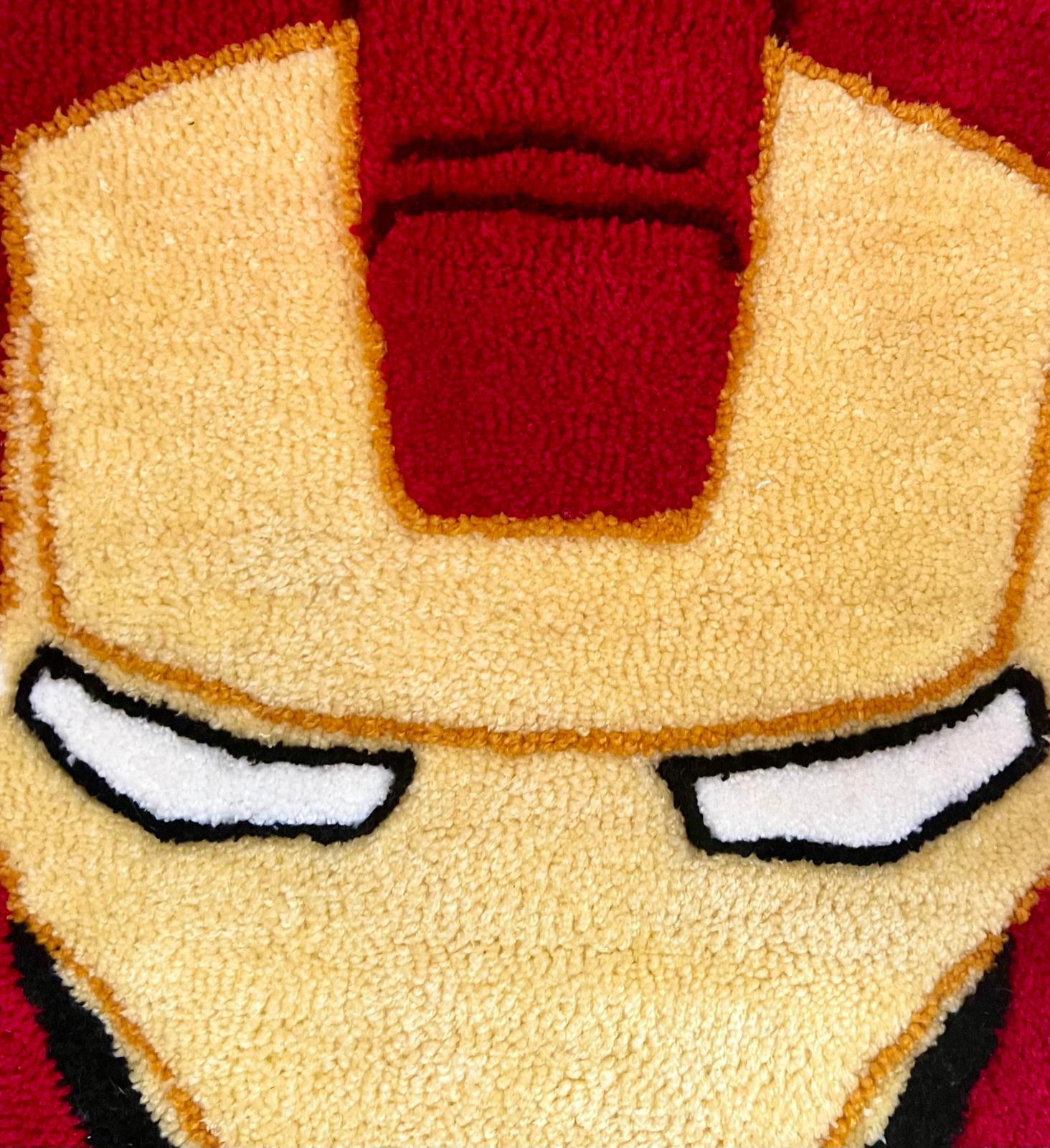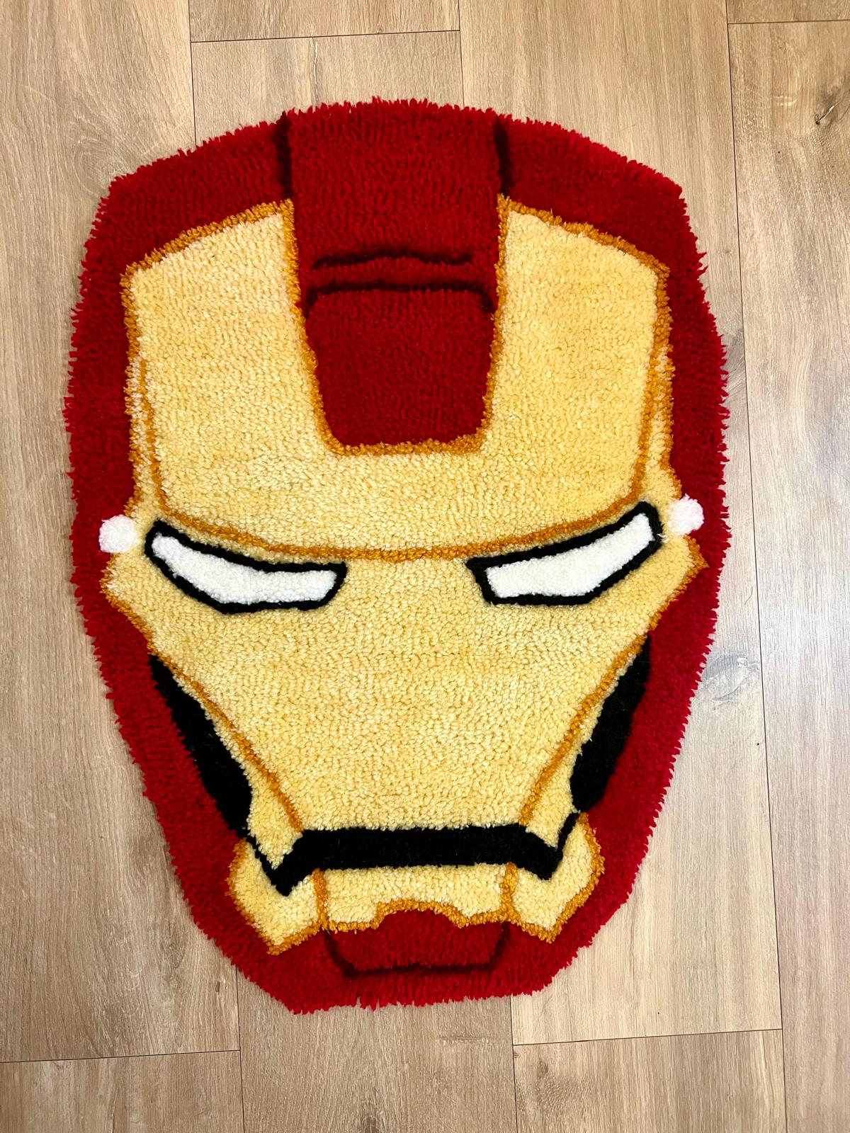 Custom handmade hand tufted Iron Man mask  carpet, made with acrylic material. The bottom of the carpet is made of non-slip material.