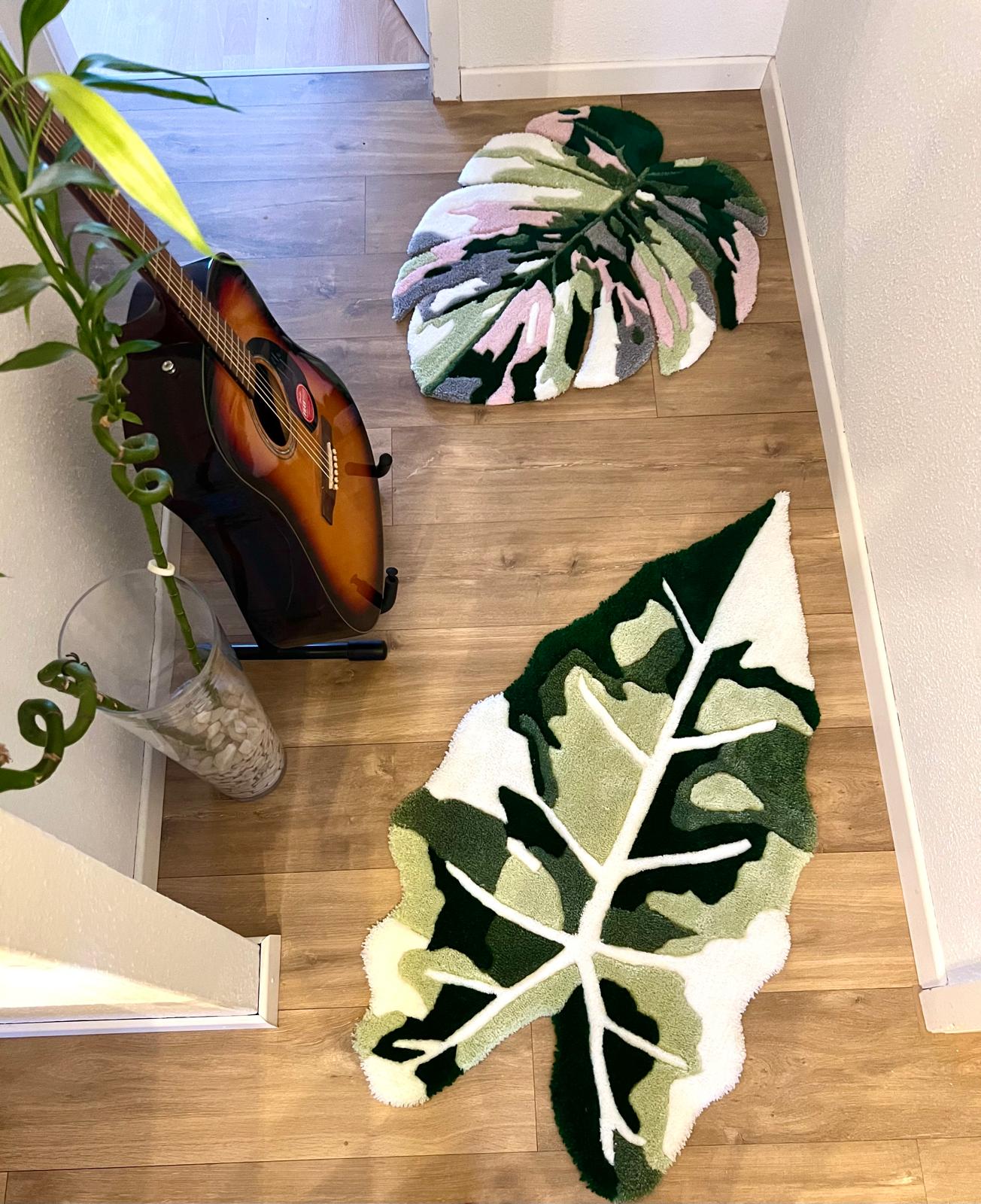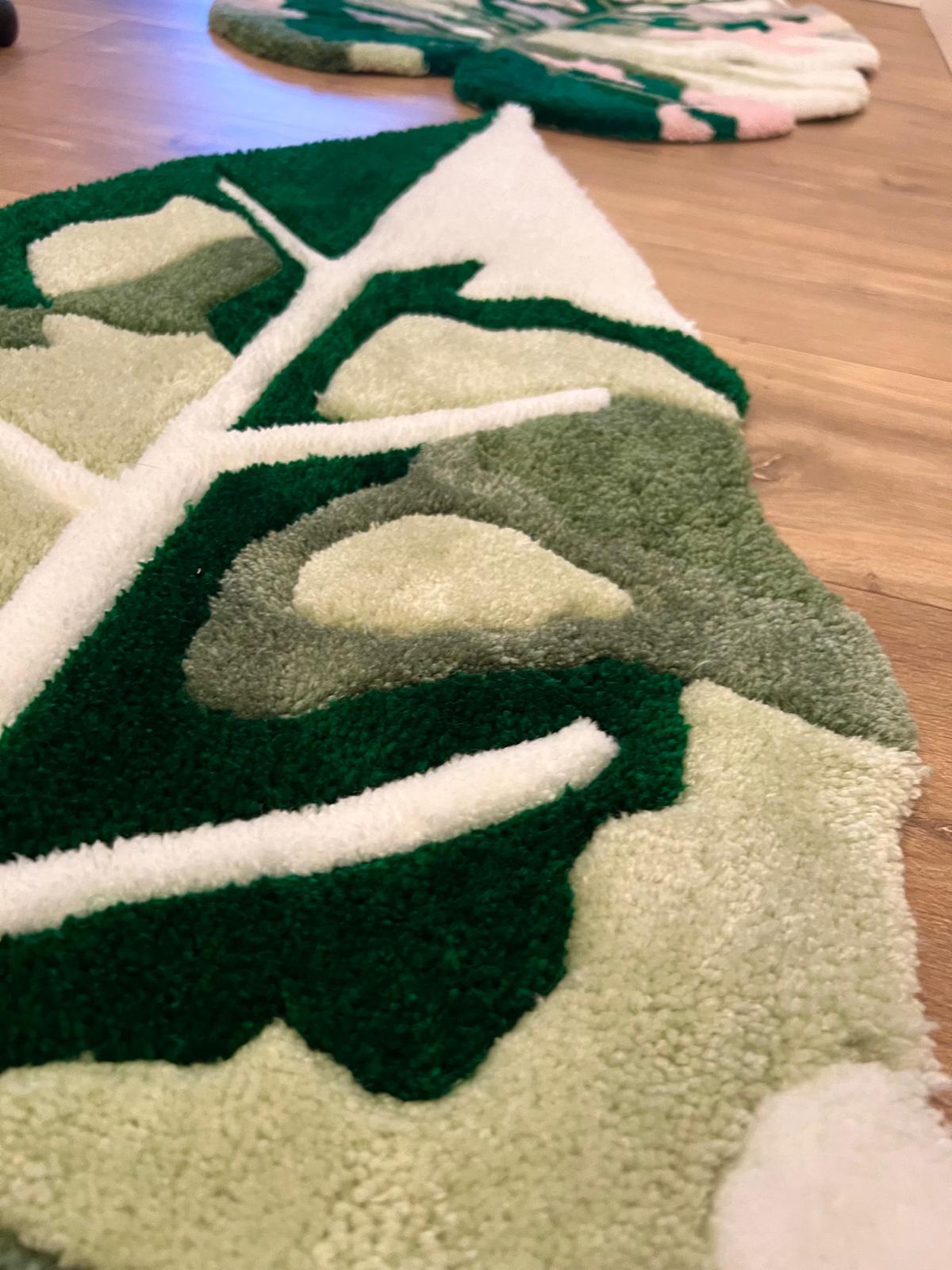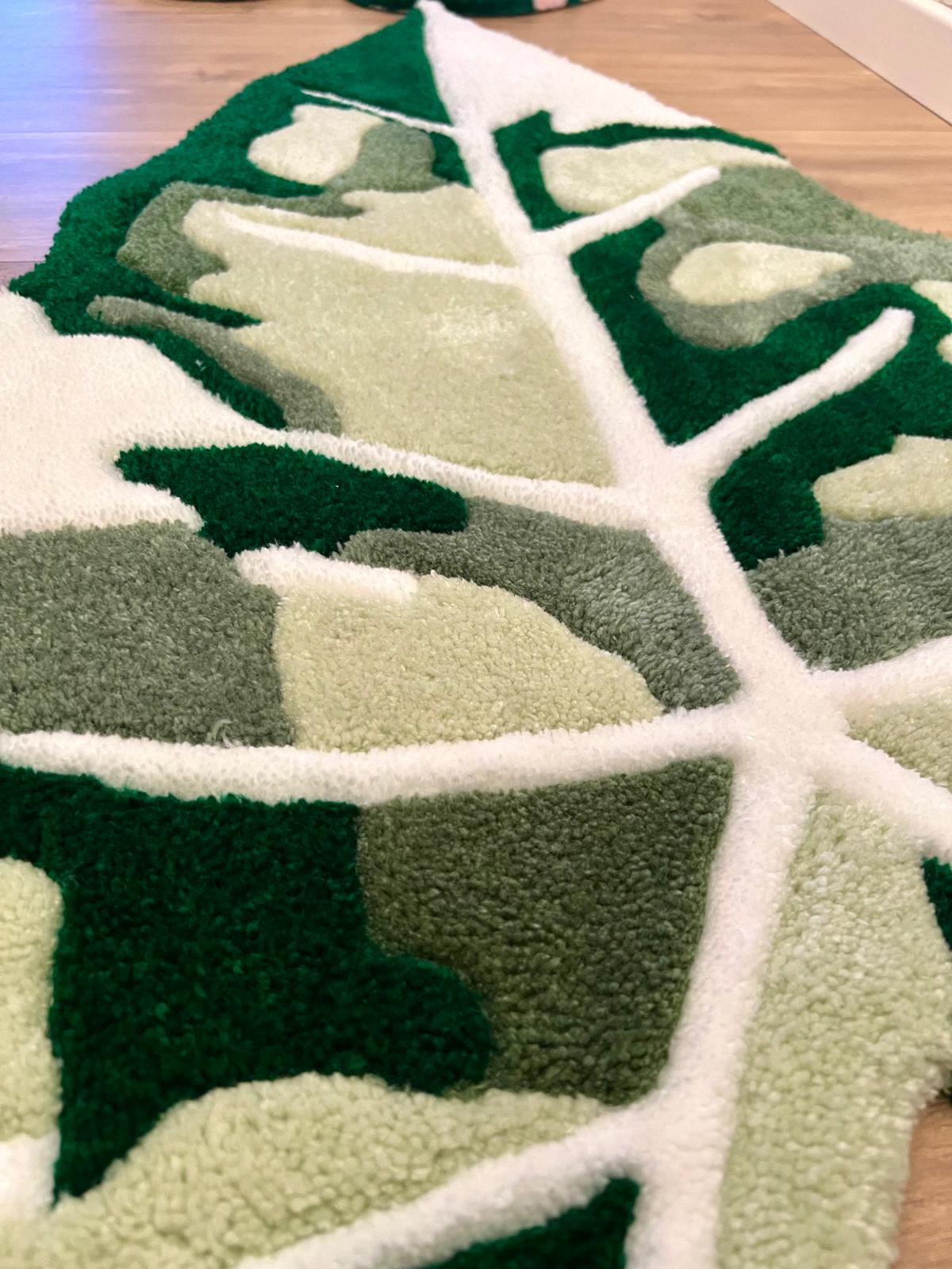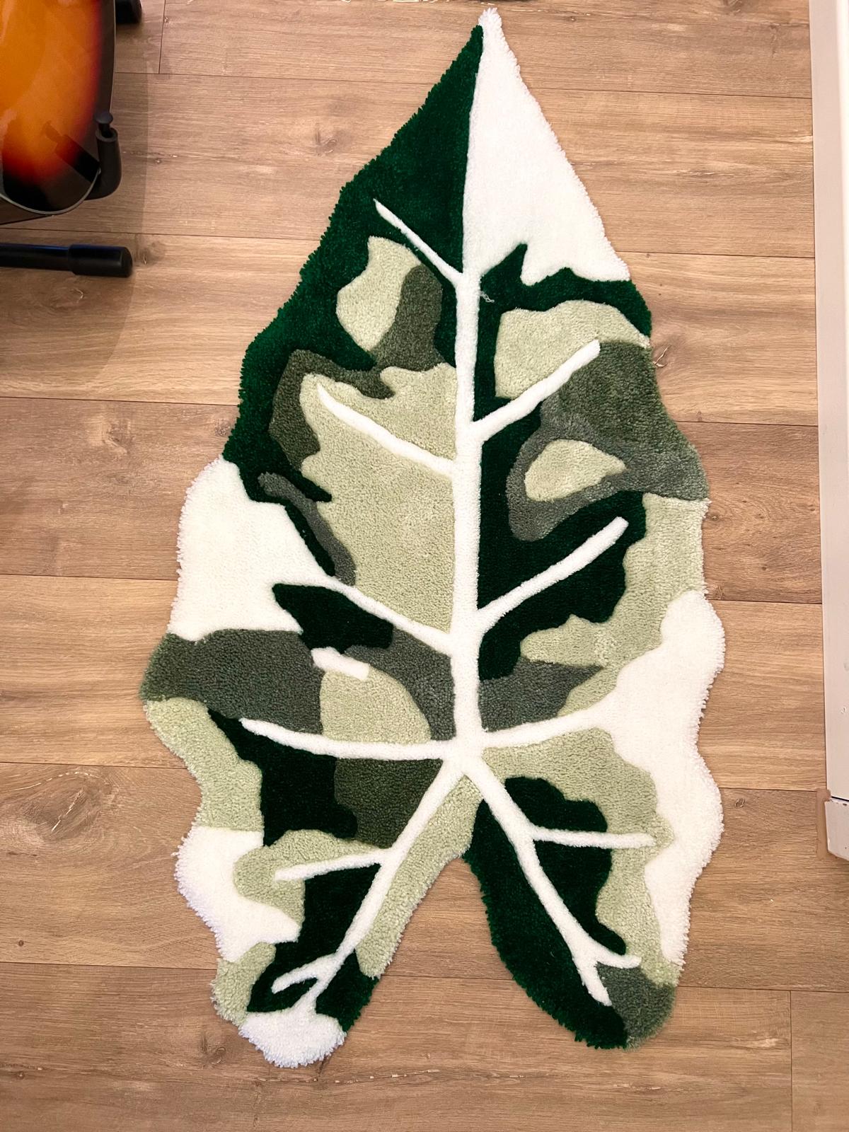 Custom handmade hand tufted Alocasia carpet, made with acrylic material.