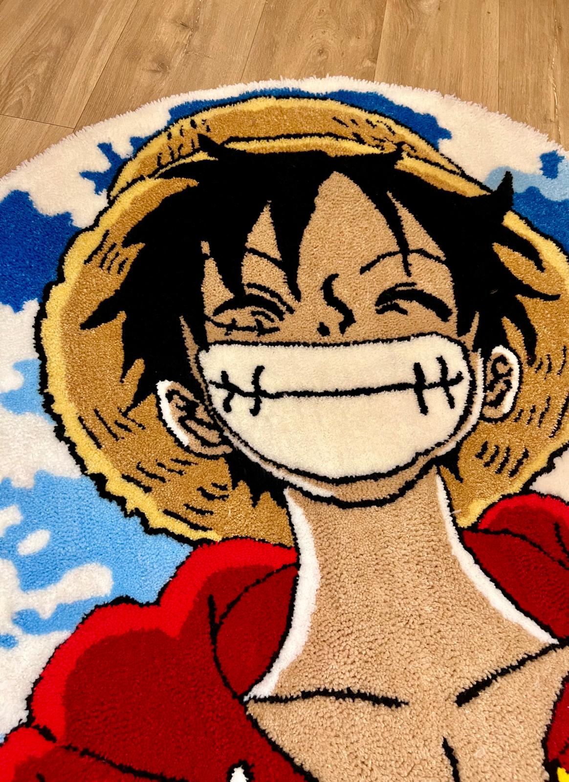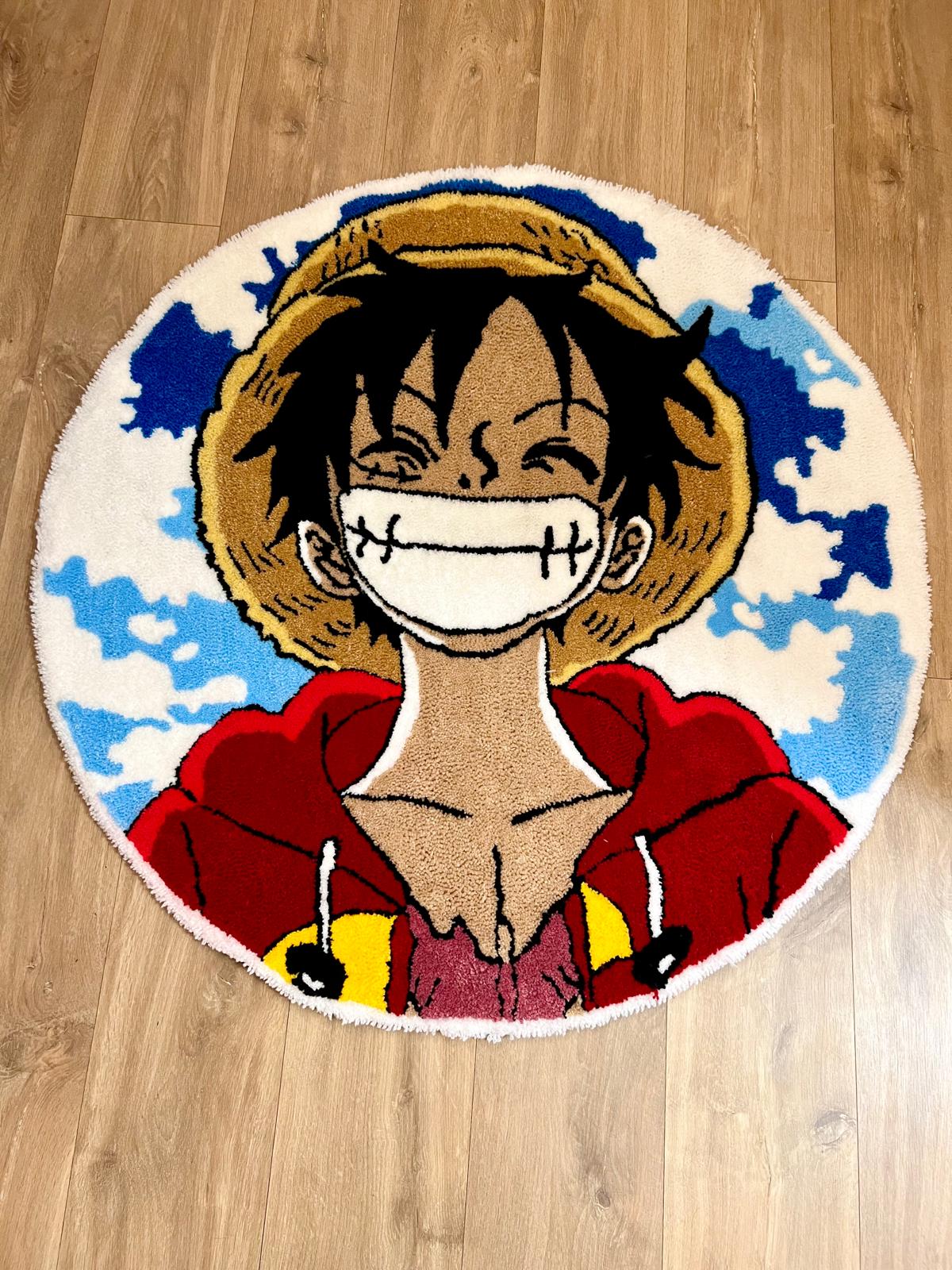 Custom handmade hand tufted One Piece Luffy rug carpet, made with acrylic material.