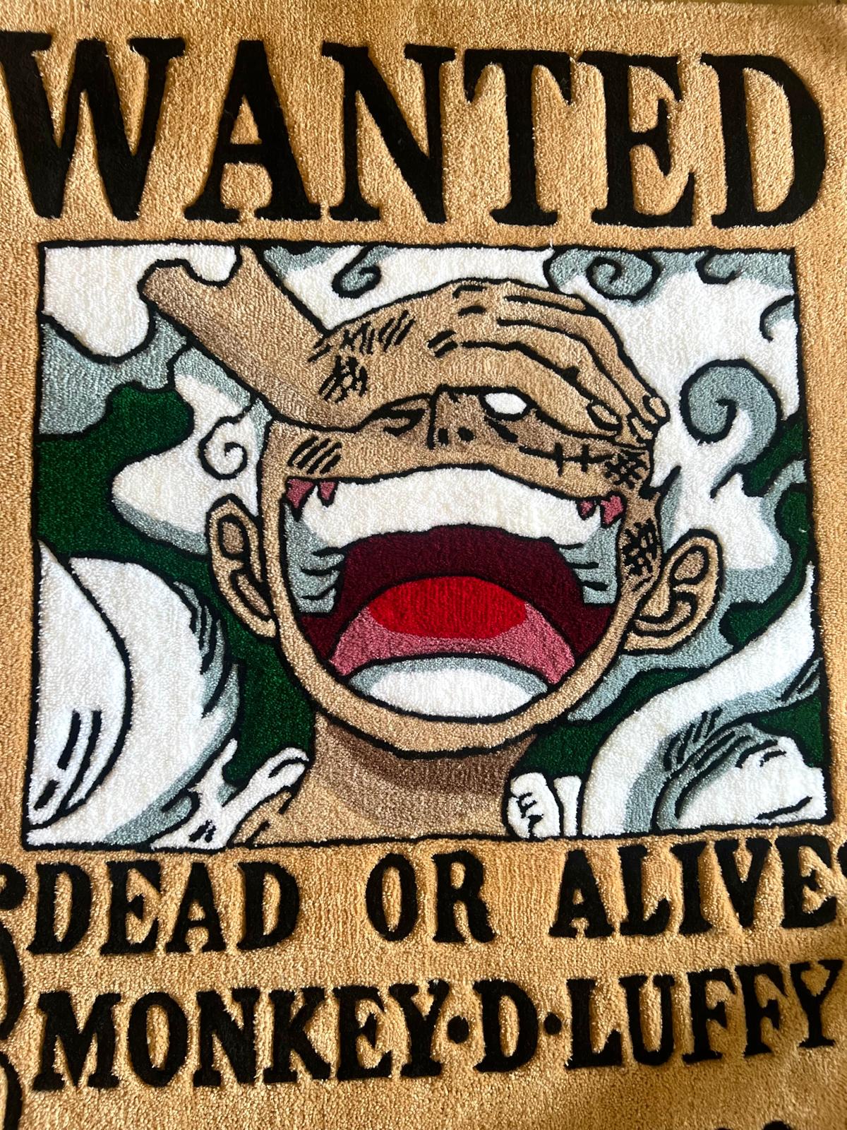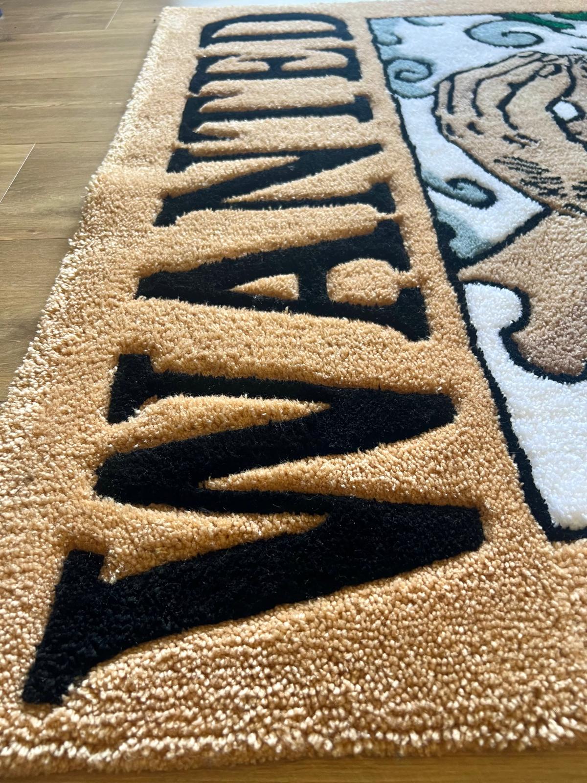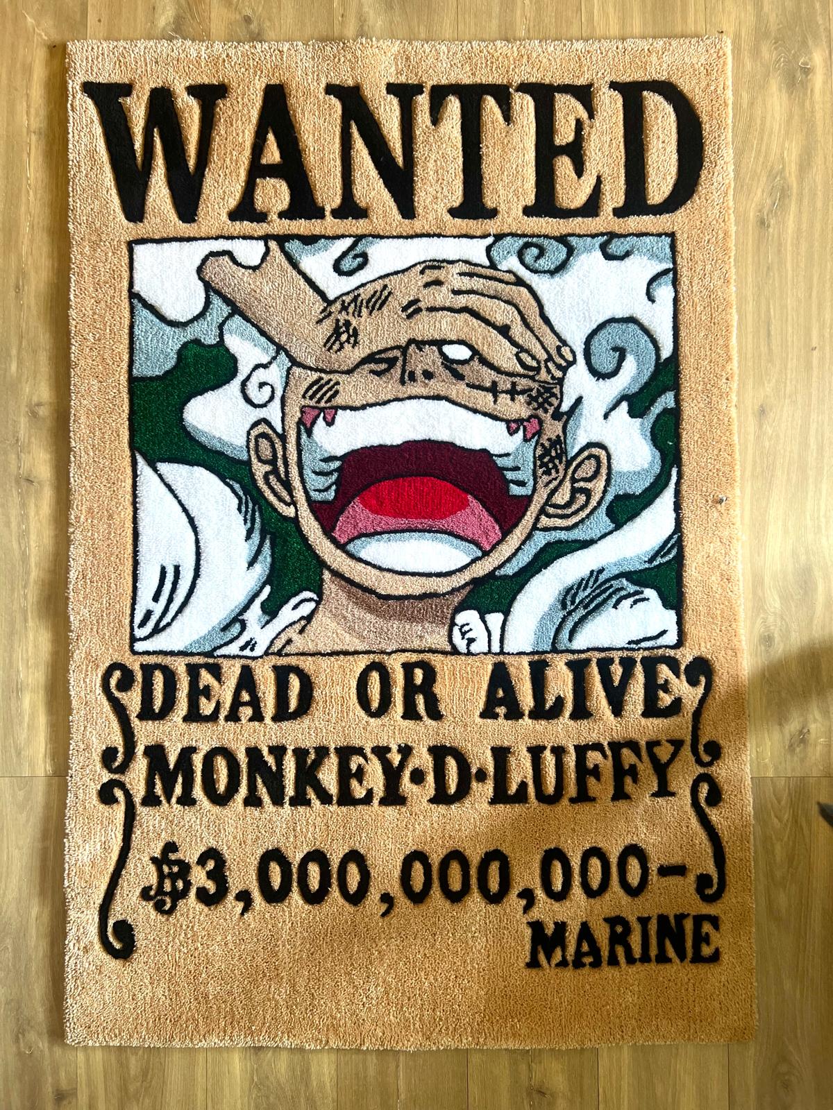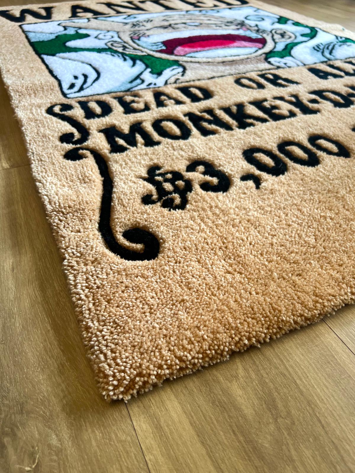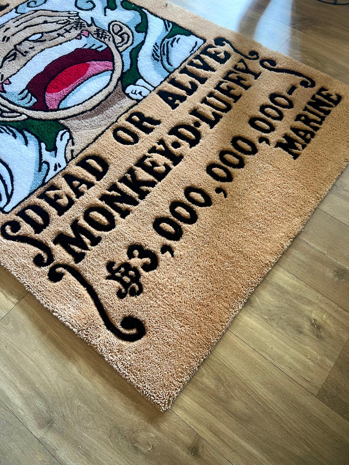 Custom handmade hand tufted One Piece WANTED carpet, made with acrylic material.