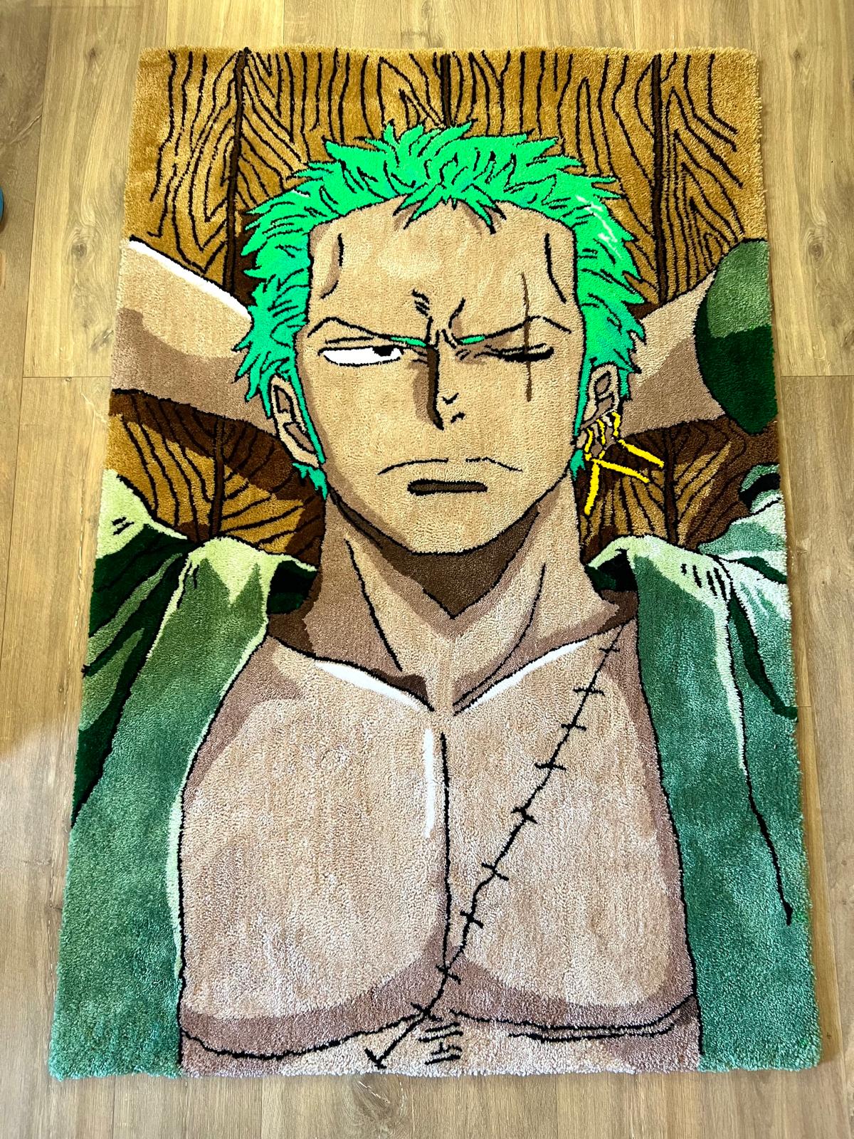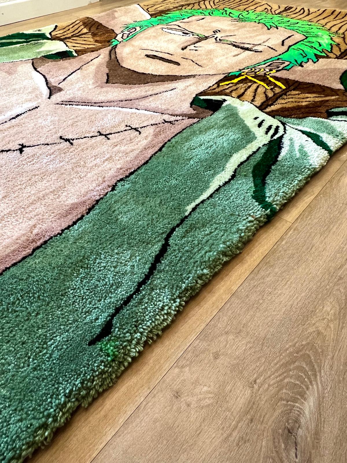 Custom handmade hand tufted One Piece Roronoa Zoro carpet, made with acrylic material.