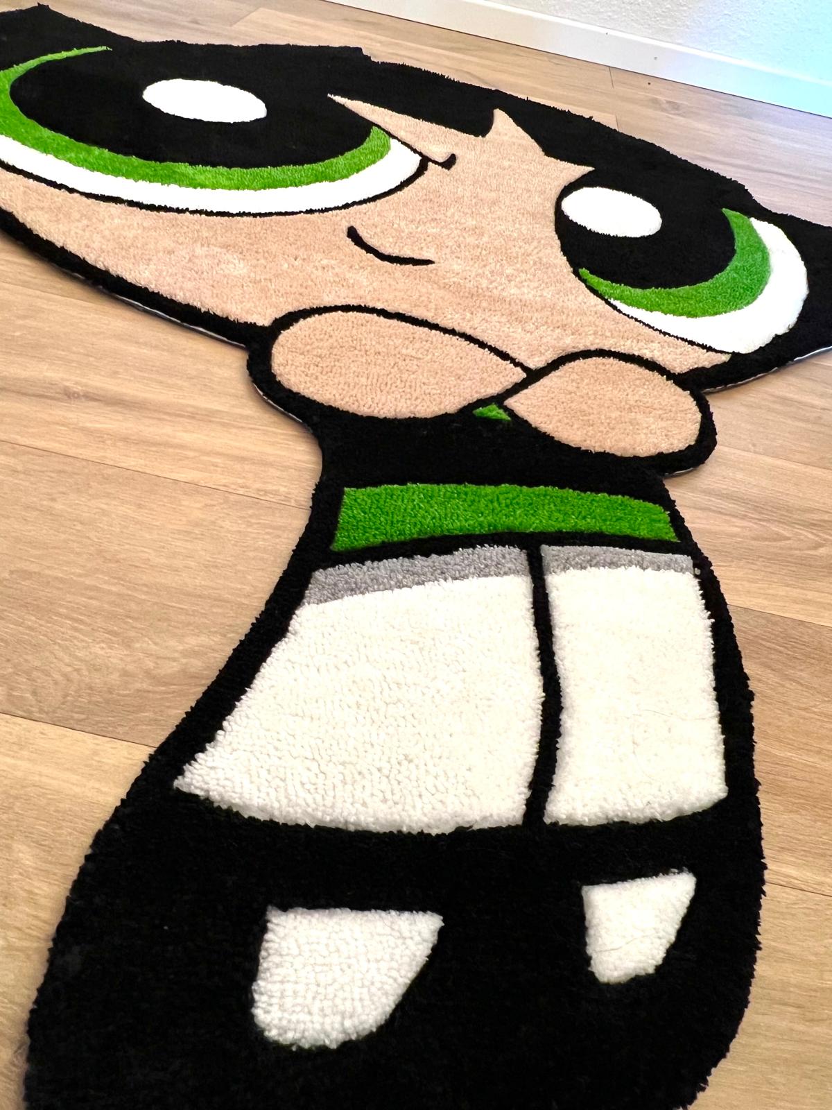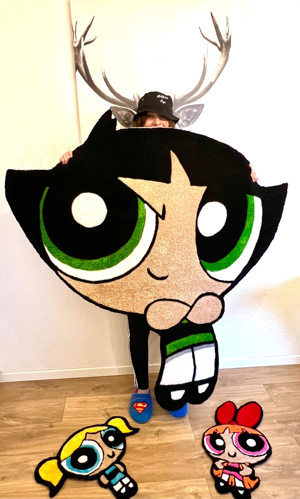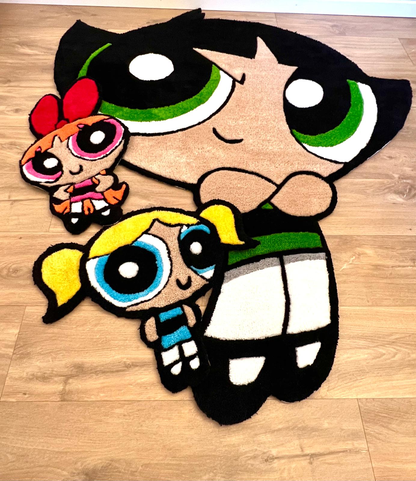 Custom handmade hand tufted Powerpuff Girl , Buttercap carpet, made with acrylic material. The bottom of the carpet is made of non-slip material.