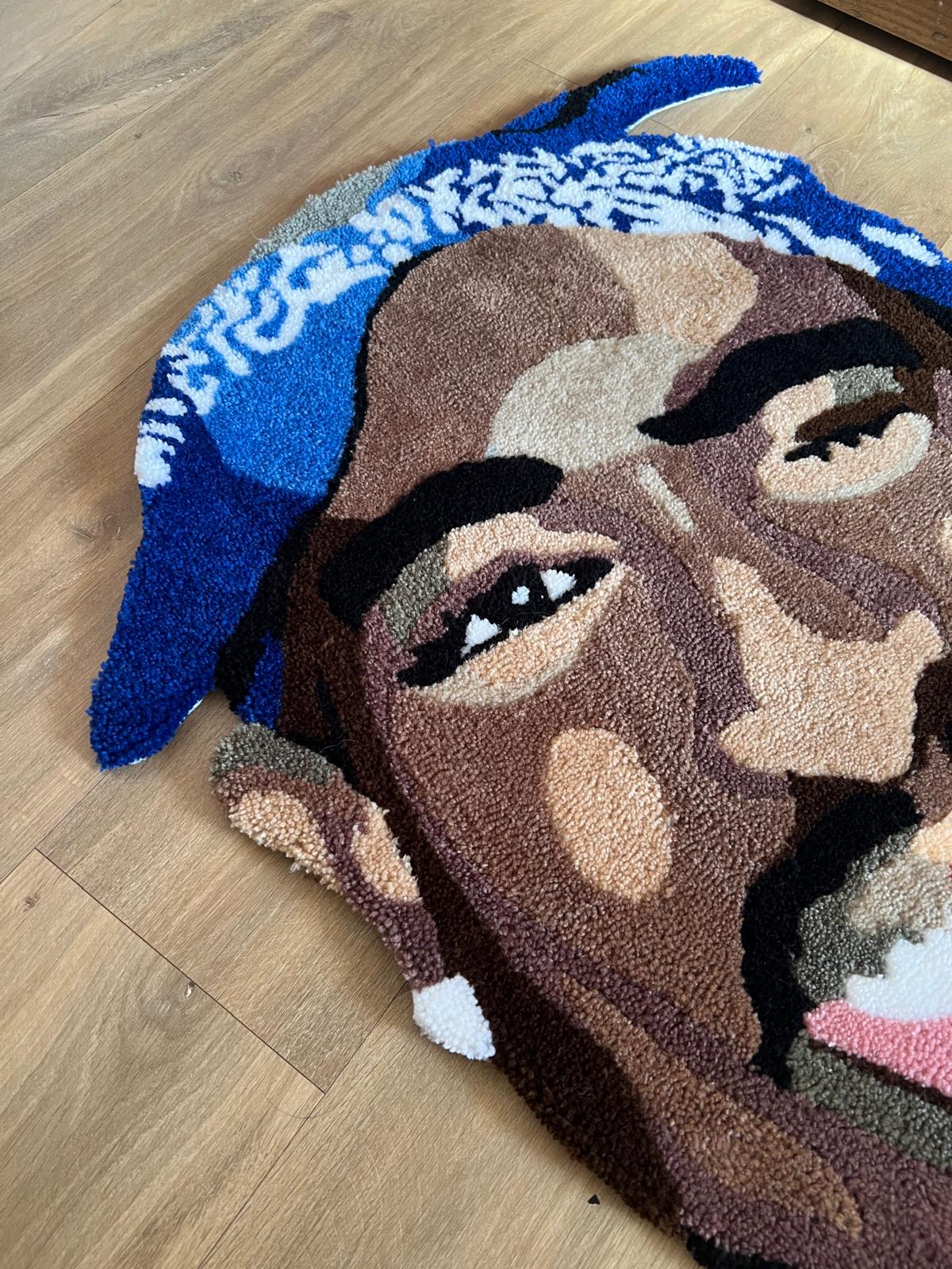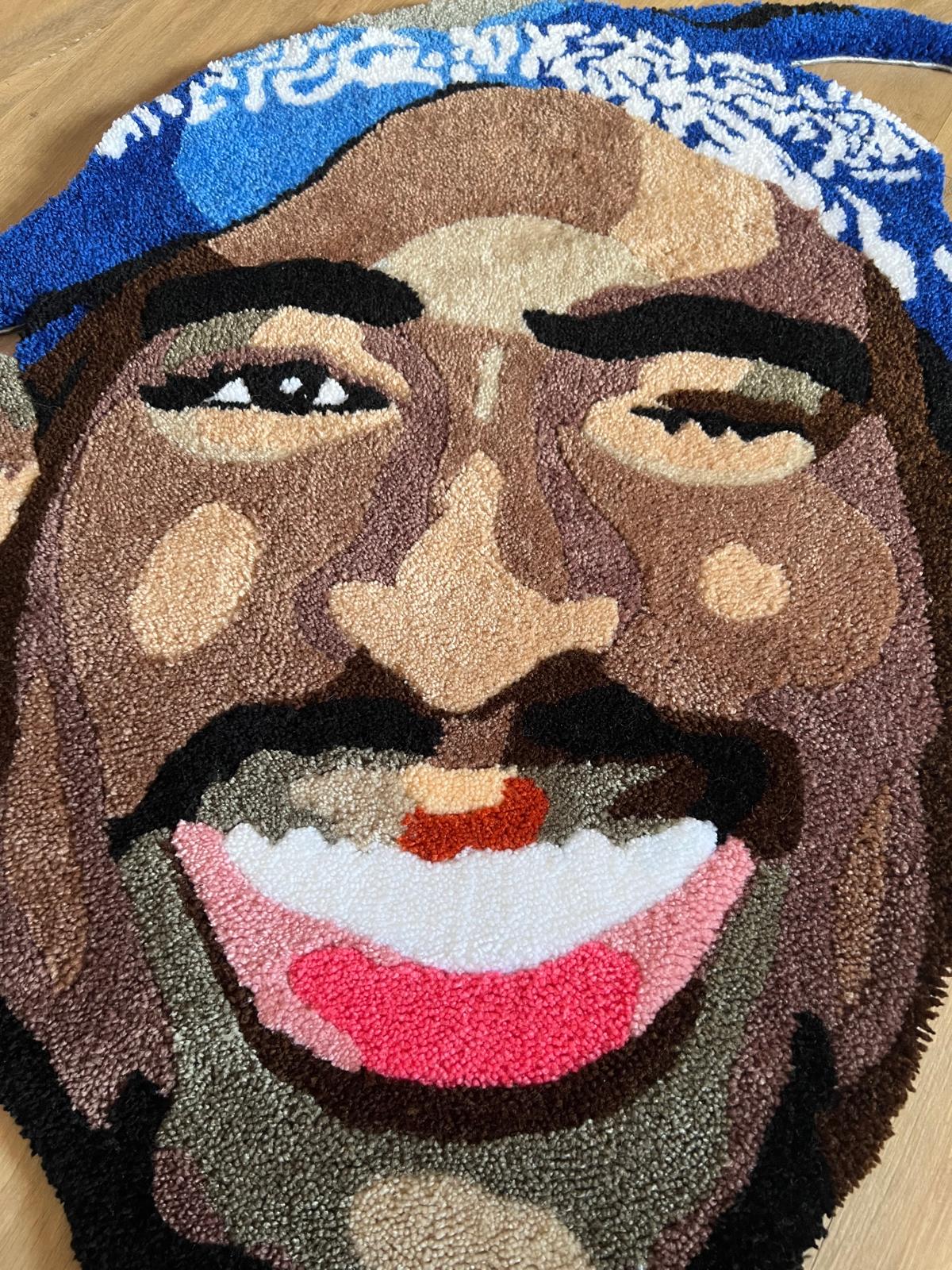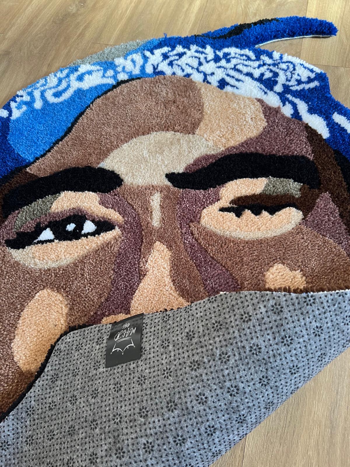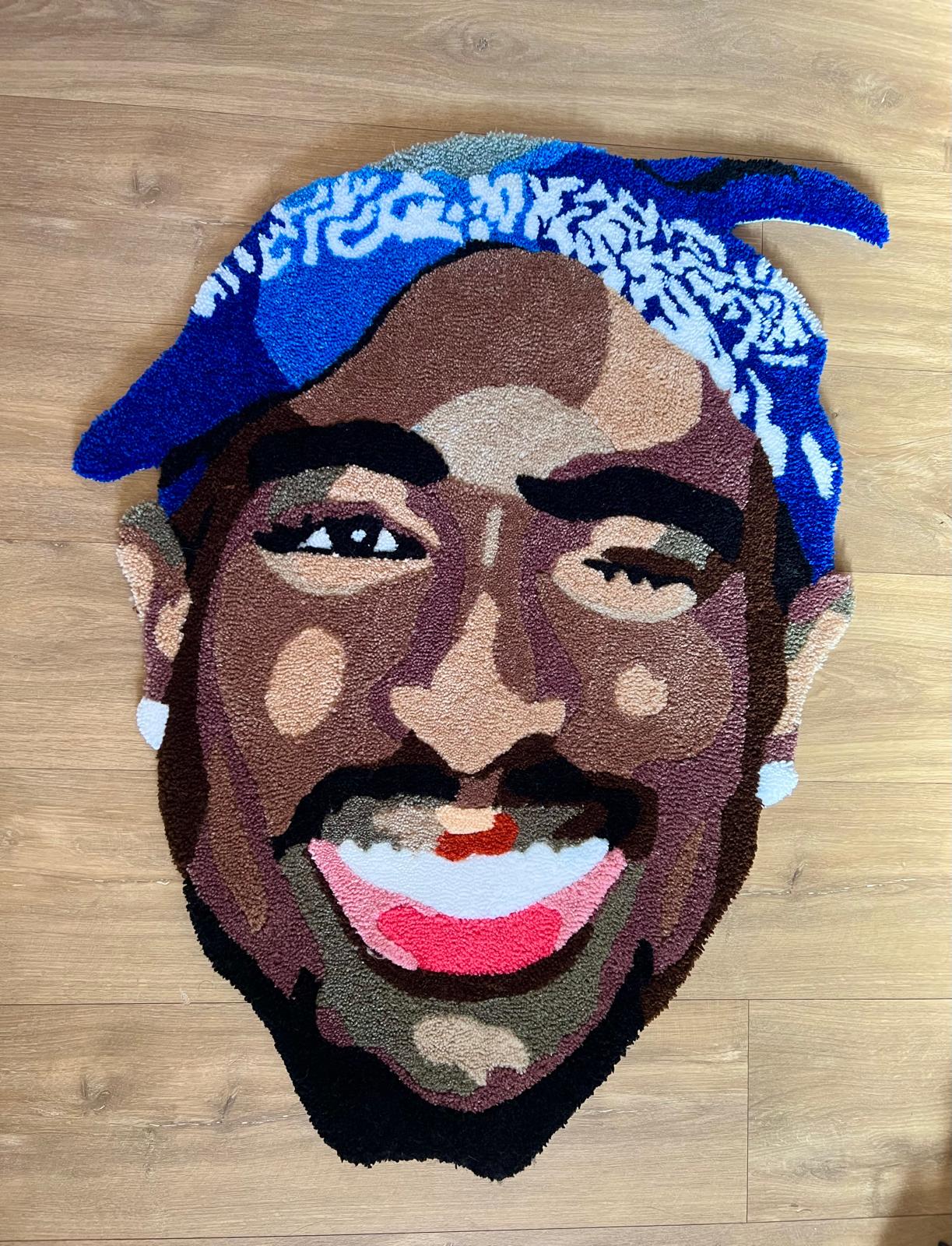 Custom handmade hand tufted Tupac carpet, made with acrylic material. The bottom of the carpet is made of non-slip material.